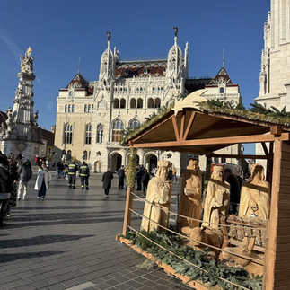 Breakfast this morning was 7 to 9 am, and then the included Budapest city tour left at 9:45 am. We boarded the buses and drove past many of the iconic sites. We stopped at Castle Hill and had free time to explore, so we went to the Christmas markets where we found different things than we had seen at the other markets. We also stopped at Heroes’ Square, but only stayed in the square and did not go over near the park. They are getting the park ready for the holidays, and there was a tethered hot air balloon that kept rising over the park.