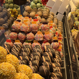 There was not much I could eat, so on our walk back we stopped again at the Town Square market and tried a “grilled cheese” we had seen, but it was not what we expected. We ended up getting a chocolate dumpling and a chimney cake instead. Not exactly nutritious, but at least I was not still starving.